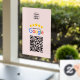 Une fenêtre rose vif s'accrochant avec un code QR pour Google Business Reviews. Il invitation les clients à scanner et laisser un avis 5 étoiles, avec un design élégant et moderne qui se fond harmonieusement avec l'image de marque de votre entreprise. Parfait pour placer sur les vitres de vitrine pour encourager les commentaires positifs d'une manière visuellement attrayante.