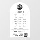 Assurez-vous que vos clients savent exactement quand vous êtes disponible avec les Heures d'affaires personnalisées avec le logo de la Boutique et le Cling de la fenêtre de code QR. Cette vignette de fenêtre élégante et professionnelle affiche de manière visible les heures d'ouverture de votre magasin en plus de votre logo, ce qui permet aux passants de vérifier rapidement quand votre entreprise est ouverte. Le code QR intégré dans la conception offre une option avancée et pratique pour les clients qui peuvent scanner et obtenir plus d'informations directement à partir de leurs téléphones, ce qui améliore l'expérience globale du client. Fabriqué à partir de vinyle de haute qualité, ce grand cling de fenêtre est idéal pour les vitrines, les bureaux ou toute entreprise qui veut s'assurer que ses heures d'ouverture sont visibles et accessibles. L'arrière - plan blanc contraste fortement avec le texte et le logo, assurant une visibilité élevée. Cette accroche personnalisable de fenêtre peut être adaptée à votre marque unique tout en offrant un look professionnel qui ajoute à l'attrait de votre entreprise. Non seulement cette vignette offre-t-elle des avantages pratiques, mais elle agit également comme une extension de votre marque, renforçant l'identité de votre magasin chaque fois que quelqu'un la regarde. Que vous soyez un détaillant, un restaurant ou un fournisseur de services, cette Heures d'affaires personnalisées avec logo de magasin et clouage de fenêtre QR Code est une façon intelligente et efficace de communiquer vos heures tout en invitant plus de clients à s'engager avec votre entreprise en ligne.