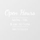 Panneau Cling de fenêtre Entreprise et Heures Ouverte. Polices Serif Élégantes. Grand type pour une lecture facile. Facile à personnaliser pour les besoins de votre entreprise.