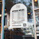 Autocollant Pour Fenêtre Heures d'ouverture avec logo code QR blanc Arch