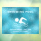 Un fond bleu métallisé faux, texte blanc. Personnalisez et ajoutez les heures d'ouverture de la piscine