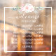 PixDezines autocollant de fenêtre DIY couleurs, pivoines roses blush Bienvenue panneau des heures d'ouverture. accentué d'une écriture calligraphique moderne. Tous les éléments sont modifiables et amovibles.