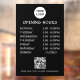 Conçu dans un style d'écriture simple et moderne avec code Qr, c'est parfait pour les cafés, les boutiques, les salons, les studios ou les bureaux qui apprécient une esthétique propre et minimale. Personnalisez facilement le nom de votre entreprise, le logo et les heures d'ouverture pour correspondre à votre marque. Idéal pour les portes ou les fenêtres en verre, donnant à votre entreprise une apparence soignée et accueillante.