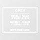 Panneau de fenêtre pour les heures d'ouverture du magasin. Personnalisez-le avec les heures d'ouverture et le site Web de votre magasin. Affichez-le sur la vitrine ou la porte de votre établissement.