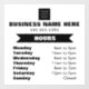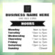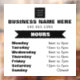 Autocollant de fenêtre des heures d'ouverture avec modèle de logo.