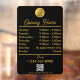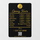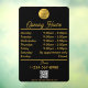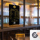 Un autocollant de fenêtre et un adhésif de fenêtre noir or à heures d'ouverture avec logo d'entreprise, QR Code, vos icônes de médias sociaux personnalisés et coordonnées. Un adhésif de fenêtre d'heures de boutique personnalisé parfait pour les vitrines et les pancartes de porte d'entrée. Parfait pour un propriétaire de magasin qui souhaite informer ses clients de ses heures d'ouverture.