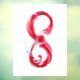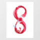Infinity symbole of continuous stream of red pouring into glass glass glass on white background.