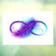 Infinity symbole with a beautiful feather painted in purple and blue bright colors on white background