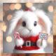 L'image représente une scène festive avec un lapin blanc comme protagoniste principal, habillé adorablement d'un costume Père Noël rouge. Le lapin tient un sucre de canne dans une patte et une pancarte qui dit "vacances pleines d'espoir" dans l'autre. La toile de fond est floue et présente des lumières chaudes et lumineuses qui donnent une ambiance de fête et de joie de fêtes.