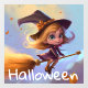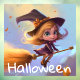 Autocollant Pour Fenêtre Jolie Sorcière Volante Animée