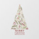 Fenêtre de Noël personnalisée Cling avec un thème rustique, naturel en rouge, vert et or. Le design comprend un sapin de Noël stylisé créé avec des plantes d'hiver, des aiguilles de pin et des cônes de pin, des baies saintes et saintes, ainsi que des ornements de Noël traditionnels et des étoiles. Le libellé "Joyeux Noël" constitue la base de l'arbre de Noël et vous pouvez le customiser avec votre propre texte, comme, de tous à #1234.