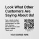 Encouragez vos clients des petites entreprises à laisser un avis. Le titre dit : "Regardez ce que les autres clients disent de nous". Modifier le libellé pour répondre à vos besoins. Modifiez le lien Code QR vers le lien menant à votre propre page de commentaires. Si Google, des conseils sont donnés ici : https://tinyurl.com/5ydtb22k