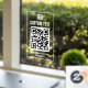 Autocollant Pour Fenêtre Logo, code QR et texte personnalisé blanc et clair