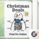 Ajoutez votre URL. Panneau de la fenêtre Code QR de Noël. Trouvez-nous en ligne. Photo Snowman avec QR Code. Offres de Noël.