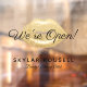 Faites la promotion de votre salon de beauté, des services de maquillage et bien plus encore grâce à l'élégante et luxueuse fenêtre de salon ouvert pour affaires. Le design présente d'élégantes lèvres de poussière de parties scintillant en faux or le long du sommet avec "We're Open!" affiché dans une élégante typographie de script. Design graphique à lèvres Gold parties scintillant customisé avec votre nom d'entreprise. Oeuvre de Moodthology.