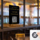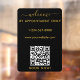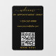 Une vignette de fenêtre et un cling de fenêtre en noir et or avec logo d'entreprise, code QR, vos personnages et coordonnées. Une enseigne d'accueil personnalisée heures sur rendez-vous seulement cling de fenêtre parfait pour les vitrines et les panneaux de porte d'entrée. Parfait pour un propriétaire de boutique d'affaires qui souhaite informer ses clients de ses horaires d'ouverture.