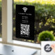 Un simple modèle de signalisation adhésif de fenêtre en vinyle noir pour entreprise de connexion WiFi personnalisable, dans un style minimaliste moderne qui peut être facilement mis à jour avec votre code QR, les détails de votre réseau ou un texte personnalisé.