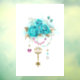 Autocollant Pour Fenêtre Roses turquoise avec touches