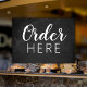 Ce panneau commercial personnalisé noir tableau noir camion de nourriture est en mesure de tenir votre message personnalisé. Personnalisez pour modifier ce panneau personnalisé Order Here comporte un faux panneau noir avec un script manuscrit blanc et une police moderne.