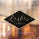 Le texte graphique en faux or écrit "Cils" tandis que votre nom est associé en dessous pour un logo instantané sur ce sticker de fenêtre personnalisé. Art et design © 1201AM Design Studio | www.1201am.com