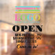 Horaires d'ouverture des clings de fenêtre personnalisés avec votre logo au-dessus de OPEN écrit dans une police noire en gras. En dessous, vos heures d'ouverture avec les jours dans une police plus audacieuse et les heures dans une police plus mince. Entrez ! dans un scénario rétro. Heures d'ouverture pratique cling de fenêtre pour votre petite entreprise avec des polices noires dans un style lisible propre avec un accueil venez en bas! Ajoutez vos heures d'ouverture, du lundi au vendredi, samedi et dimanche et personnalisez avec votre logo d'entreprise.