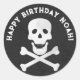 Ajoutez une touche audacieuse à votre fête d'anniversaire Halloween avec cet autocollant crâne et os ! Avec un crâne blanc sur fond noir et un texte d'anniversaire personnalisable, il est parfait pour les faveurs de fête, les sacs de friandises, les notes de remerciement ou les sceaux d'enveloppe.