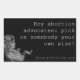 "Hé les défenseurs de l'avortement : choisissez quelqu'un de votre taille !" Une façon forte et directe de transmettre vos convictions pro-vie. Nous vous recommandons de le placer sur votre ordinateur portable ou sur un classeur fréquemment utilisé pour un impact maximal. Les produits bénéficient à séculier Pro-Life.