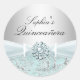 Sticker Quinceanera. Bleu & argent tourbillon floral avec arc & bijoux. Exclusive Zazzle. Customisez avec vos propres détails. VEUILLEZ NOTER toutes les images plates ! Ils n'ont pas d'argent réel, arcs, diamants ou bijoux! !
