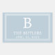 Ces autocollants rectangulaires personnalisés bleu poussiéreux sont parfaits pour un mariage, une fête de fiançailles, une douche de mariée ou des faveurs de dîner de répétition ou comme détail supplémentaire à tout article. Le design présente la couleur bleu poussiéreux tendance avec des polices modernes et simples. Personnalisez-les avec votre initiale, votre nom et la date de l'événement pour les rendre uniques !