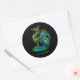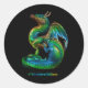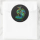 autocollant rond avec un dragon rayonnant coloré