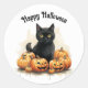 Sweet, photo d'un chaton noir assis avec des citrouilles, est présenté sur cet autocollant rond pour Halloween. Avec le message "Happy Halloween", rend cet autocollant idéal pour les envois spéciaux, la décoration, la réservation de rebuts et plus encore!