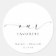 Ces autocollants de faveur de mariage présentent un design minimaliste et un titre en calligraphie. Personnalisez les sacs avec vos noms et date, le titre en script n'est pas modifiable. Ces autocollants de faveur peuvent être utilisés pour les mariages, les douches de mariée, les douches de bébé, les anniversaires ou tout autre événement. Pour une personnalisation plus avancée de ce design, sélectionnez simplement le bouton "Personnaliser" ci-dessus.