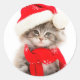 Étalez la joie de Noël et célébrez la saison festive avec cet autocollant rond classique adorable, représentant un joli chat de Noël portant un chapeau et une écharpe de Père Noël sur fond blanc. C'est un moyen facile de donner vie aux enveloppes de vos cartes de Noël, mais aussi une belle touche finale pour vos cadeaux de Noël.