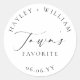 Ces autocollants de remerciement de mariage présentent un design minimaliste et un titre en calligraphie. Personnalisez les autocollants avec vos noms et date, le titre en script n'est pas modifiable. Ces autocollants peuvent être utilisés pour les mariages, les réceptions de mariage, les baby showers, les anniversaires ou tout autre événement. Pour une personnalisation plus avancée de ce design, sélectionnez simplement le bouton "Personnaliser" ci-dessus.