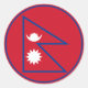 Drapeau du Népal. Le drapeau national du Népal (népalais : ने पा ल को झ डा) est le seul drapeau national non quadrilatéral au monde. Le drapeau est une combinaison simplifiée de deux pennons simples, le mot vexillologique pour un pennant. Jusqu'en 1962, les emblèmes du drapeau, le soleil et le croissant de lune, avaient des visages humains. Ils ont été retirés pour moderniser le drapeau. La frontière bleue symbolise la paix et l'harmonie qui prévalent dans le pays depuis l'âge de Gautama Bouddha, né au Népal. Le rouge pourpre est la couleur nationale du Népal, et il indique les esprits courageux du peuple népalais. Les deux triangles symbolisent les montagnes de l'Himalaya et pourraient représenter les deux principales religions, l'hindouisme et le bouddhisme. Le drapeau triangulaire rouge est un symbole hindou de la victoire depuis le Ramayana et le Mahabharata. La représentation des corps célestes représente la permanence, l'espoir que le Népal sera dernier aussi longtemps que le soleil et la lune. La lune symbolise que les Népalais sont apaisants et calmes, tandis que le soleil symbolise une détermination féroce. La lune symbolise aussi les nuances et le temps cool de l'Himalaya, tandis que le soleil symbolise la chaleur et la haute température dans la partie basse (Tarai) du Népal. Autre interprétation : La forme du drapeau symbolise une pagode népalaise. Mettre un miroir sur le côté du drapeau le plus proche du mât créera une image de pagode.