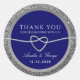 Simple, élégant, autocollant de remerciement de mariage moderne pailleté argent et bleu royal pour les faveurs, avec un cœur de corde romantique.
