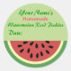 Ces autocollants de conserverie ronds personnalisés s'adaptent sur votre confiture en verre, votre gelée et préservent les couvercles en pot. Ils ont l'image d'une tranche de pastèque sur le fond. La moitié supérieure a un arrière - plan vert clair. Le couvercle de la bocale à conserves indique, "Les saucisses à croûte de pastèque maison de votre nom", et vous pouvez ajouter votre nom dans le modèle pour personnaliser. Les autocollants disent aussi, "Date", et vous pouvez écrire dans la date de mise en conserve plus tard. Vous pouvez modifier le style de police ou la couleur pour les customiser. Ajoutez ces étiquettes de conserves sur mesure à vos cornichons faits maison, à vos confitures, confitures, confitures, gelées et autres cadeaux de cuisine. Vos proches vont chérir les délicieuses friandises que vous avez faites vous-même.