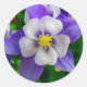 Une jolie fleur violette et blanche est représentée sur cet autocollant rond. Utilisez cet autocollant pour vos envois spéciaux, la décoration, le scrapbooking et plus encore !