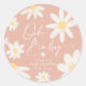 Cet autocollant rond fait partie de la collection de baby shower Floral Daisy caractérisée par un style rétro avec des fleurs de marguerite à l'aquarelle et une couleur rose parfaite pour l'anniversaire d'une fille ou une baby shower. Avec d'innombrables options de personnalisation, ce modèle est facilement personnalisable pour tous les événements et facile à assortir à vos couleurs.