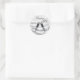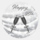 Autocollant rond présenté dans une impression photo de fête festive pour votre 25e anniversaire.