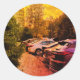 Scellez votre histoire avec de la lumière. Cet autocollant rond audacieux et personnalisable présente un coucher de soleil urbain saturé en plein épanouissement cinématique - trottoirs ambre brûlé, reflets de voiture brillants et arbres dorés sur fond de ciel de feu. Ce n'est pas qu'un autocollant ; c'est une signature d'atmosphère, un emblème de chaleur et un timbre visuel de présence.