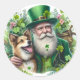 Jolie image d'un lutin tenant un chien, est présentée sur cet autocollant rond pour la Saint-Patrick. Cet autocollant peut être utilisé pour les envois de la Saint-Patrick, la décoration, le scrapbooking et plus encore !