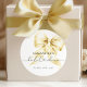 Élégant et intemporel, cet autocollant de mariage thème ruban doré présente un ruban doré peint à la main et une typographie script délicate. Parfait pour sceller les enveloppes, les sacs de faveur ou les cadeaux de remerciement avec une touche de luxe.