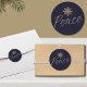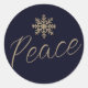 Ajoutez une touche d'élégance à vos envois et colis de vacances avec cet autocollant rond magnifique. Le fond bleu marine profond est orné d'un flocon de neige en or brossé en haut, symbolisant la beauté sereine de la saison. En dessous, le mot "Paix" est délicatement écrit dans une police douce, capturant l'esprit de tranquillité et de bonne volonté. Parfait pour ajouter une touche sincère à vos vœux de fête, ces autocollants sont un moyen charmant de répandre la joie et la chaleur pendant cette période des fêtes. Utilisez-les pour sceller des enveloppes, décorer du papier-cadeau ou orner des faveurs de vacances. Élevez votre présentation des fêtes avec ce design captivant et significatif.
