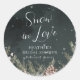 Scellez vos enveloppes avec une élégance saisonnière en utilisant cet autocollant rond Snow in Love représentant une végétation de pin aquarelle, des pommes de pin et des flocons de neige doux. Il ajoute une touche finale gracieuse aux invitations de douche de mariée, aux cartes de remerciement ou au courrier des fêtes. Avec un texte personnalisable et un design cohérent, cet autocollant complète votre suite de papeterie d'hiver avec un charme raffiné.