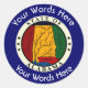 Cet autocollant personnalisé est décoré avec le Grand Sceau de l'Alabama qui peut être customisé avec un choix de mots ci-dessus et ci-dessous qui vous permettent de le personnaliser avec le nom d'une personne, d'un lieu, d'une position, etc.