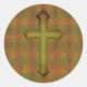Mon oeuvre d'art numérique originale est présentée sur cette feuille de jolis autocollants, composée d'un vintage motif en losange abstrait dans l'arrière - plan, dans les couleurs vert et rouille, et un style vintage illustré Cross of Faith devant dans les tons vert rustique. Ce sont de petits autocollants ronds avec 20 par feuille avec une qualité colorée vibrante. Vous pouvez également opter pour les gros autocollants de 3 pouces si vous le souhaitez. Ils fabriquaient de grands scellés d'enveloppe ou de sacs-cadeaux pour l'église et à Pâques.