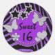 Cet autocollant élégant et tendance de 1'5" rond Sweet 16 ans a une fausse parties scintillant violette (IMPRIMÉE) et des bandes d'animaux en zèbre noir avec un motif pois et une fausse parties scintillant argentée (IMPRIMÉE) papillons, étoiles, coeurs, et une fleur funky, avec des boîtes de texte pour customiser comment vous voulez sur elle qui plaira à une jeune fille moderne. Vous pouvez choisir parmi 2 tailles. Tout va s'imprimer comme vous le voyez sur votre écran, donc si vous avez besoin d'aide pour customiser votre texte, ou si vous voulez une invitation de sweet sixteen, Bat Mitzvaj, ou Quinceanera, ou si vous voulez dans une autre combinaison de couleurs, s'il vous plaît envoyer un courriel niteowlstudio@gmail.com AVANT de commander.