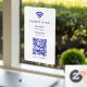 Ce panneau adhésif vinyle blanc pour fenêtre offre un moyen propre et moderne pour les clients ou les invités d'accéder à votre réseau wifi instantanément. Le design présente une zone de code QR central qui peut être liée à vos informations wifi afin que les utilisateurs puissent scanner pour se connecter sans saisir de mot de passe. Entrez votre nom de réseau et toutes les instructions personnalisées qui conviennent à vos besoins. La mise en page minimaliste garde tout lisible, ce qui fonctionne bien pour les cafés, les salons, les studios, les bureaux, les propriétés de location, les pop-up ou les lieux d'événement. Parce que le modèle est entièrement modifiable, il s'adapte facilement aux mises à jour de la marque ou aux nouvelles informations wifi. Une solution pratique et soignée qui aide à rationaliser l'accès des clients et améliore votre expérience en personne.