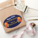 Un autocollant sur mesure avec de l'art vintage de caisse de cuisine d'oranges avec de petites fleurs. En haut on lit Accueil Fabriqué en lettres personnalisées en blanc avec un contour bleu, vous ajoutez le titre et le nom de votre ingrédient en lettres ondulées rétro orange. Cliquez sur Customiser pour ajouter ou soustraire du texte, modifier le style de lettrage, les couleurs arrière - plans, même enregistrer votre étiquette de conserve personnalisé pour plus tard!